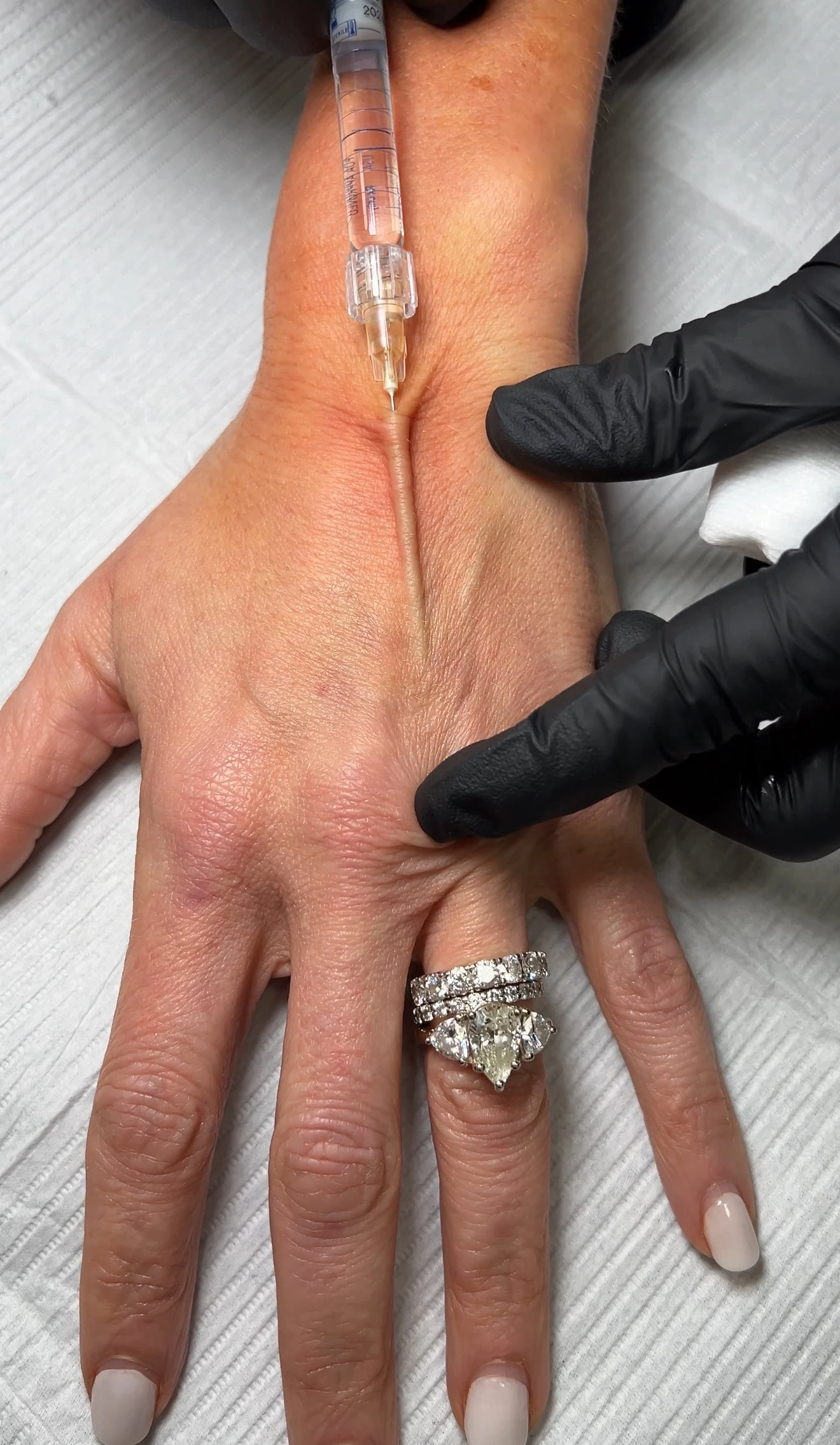 Most patients report only mild discomfort during the injection. A topical numbing cream is available to keep you comfortable throughout your session.